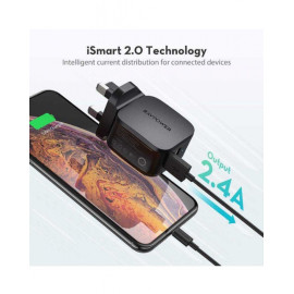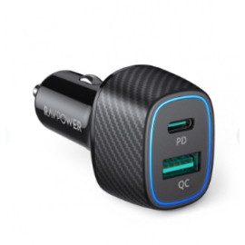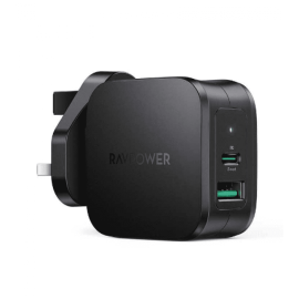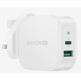 راف باور شاحن جداري 20 واط بمنفذ تايب سي ومنفذ يو اس بي + كيبل من تايب سي الى لايتنينق 1 متر